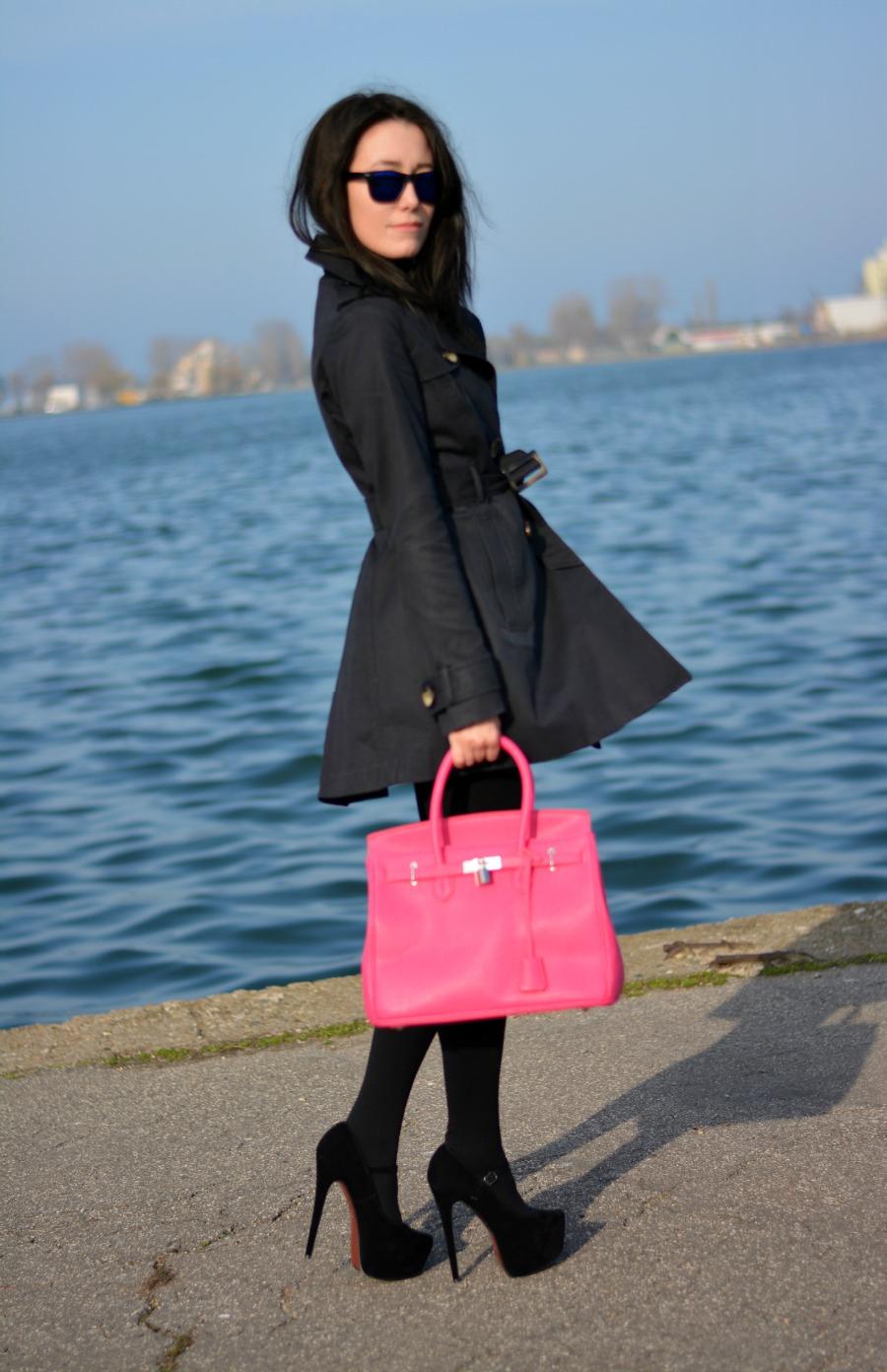 I mentioned at my previous post about mirror effect sunnies - I'm wearing my blue/violet colored sunnies today. My choice was a purple dress & pink bag; of course with a black pantihose. And completed the outfit with my trenchcoat. I didnt used any jewellery but only a colorfull collar that matched my outfit. I wish i had pink bottomed heels to match with my outfit but unfortunately i dont have it - yet! :)